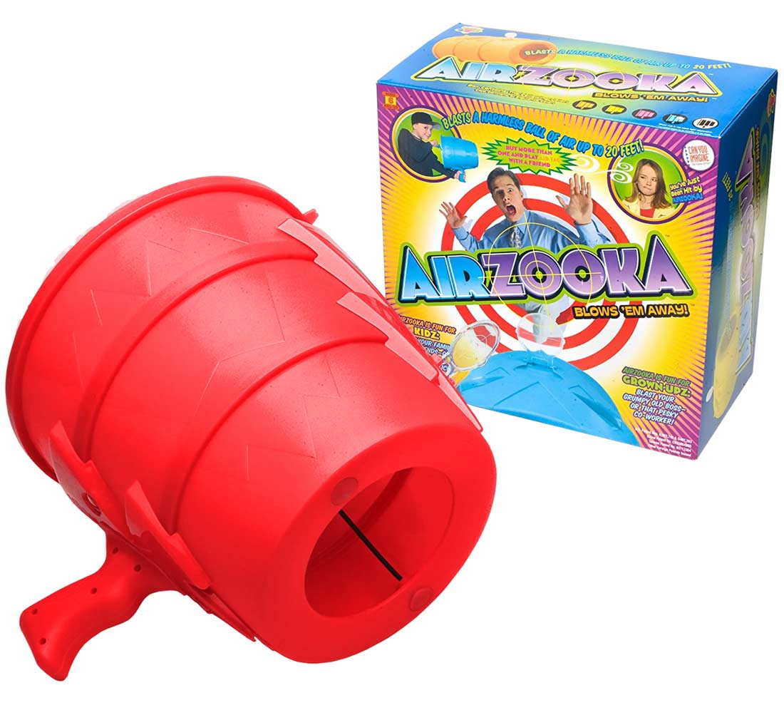 AirZooka on unikaalne teadusel põhinev mänguasi, millest võib sooritada lasu kuni kuue meetri kaugusele ja kaugemalegi. Mänguasi tekitab ohutu õhukeerise. Lask on aga piisava võimsusega, sellest võib piisata, et kustutada toa teises otsas põlev küünal või lammutada plasttopsidest püstitatud püramiid! Kas sul õnnestub kellegi soeng sassi ajada, kui oma õhulaengu temast mööda suunad? Või suudad sa oma õhukahuriga laiali paisata laual lebava paberikuhja?
